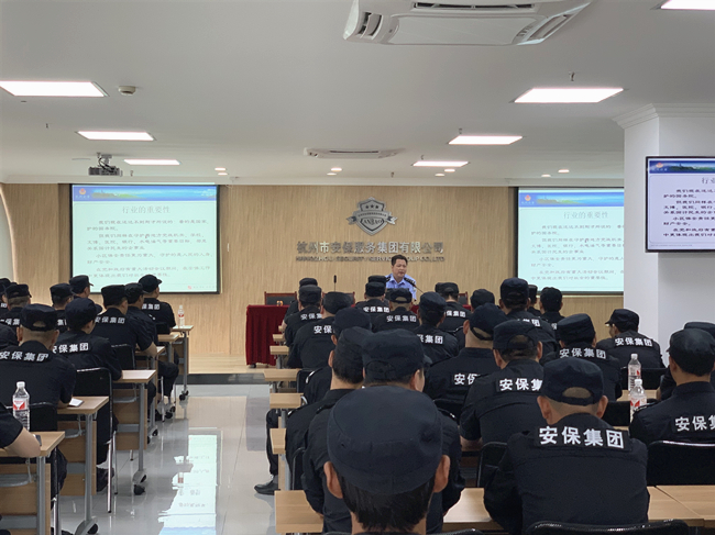当天,刘刚大队长紧紧围绕“我的地盘我做主”的活动主题,以行业认同度为开头,重点围绕国计民生安保工作中门卫、巡查、监控、被检查、交接班、应急处置等保安工作进行了深入浅出的授课。并有效规范了治安防控等级提升时,安保人员的工作要求,增强了队员的团队意识和安全意识,为安保人员进一步维护好公司正常的生产经营,保障好工作人员及电力设备的安全打下坚实基础。