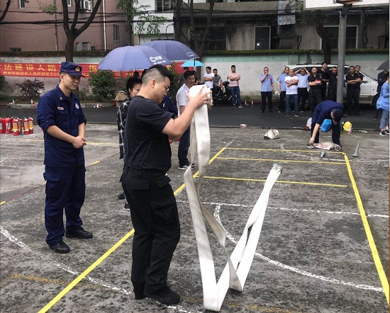公司领导高度重视本次比赛,指定保安部罗宇翔担任本次比武的领队教练,专门负责队员赛前训练。 为保证此次比武取得好成绩,罗宇翔组织对参赛人员赛前针对性集中训练,灭火器、灭火毯的规范操作,消防水带的抛卷技巧等,做好了充足的赛前准备。
