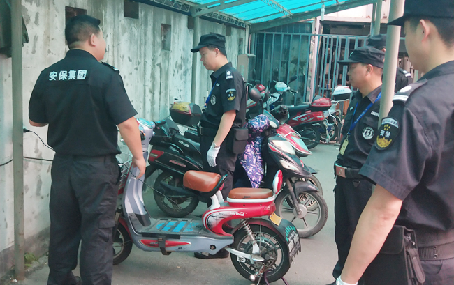 李鹏队长首先对交警支队驻点全体安保队员进行安全培训,尤其是岗前、岗中、岗后的一些注意事项,要求在日常巡查中发现问题要及时上报处理,做到“早发现、早汇报、早处置”,接着对全体保安员进行消防设施的使用进行培训,灭火器、消防水泵、报警按钮等消防器材的使用方法传授给每位队员,让每位队员都能熟练使用消防器材。最后,带领所有队员对安全死角和电动车充电处进行重点检查,安排部署巡查时注意事项,要求巡查人员在巡查时对充满电的电瓶车进行断电,以免在高温下长时间充电引起火灾。