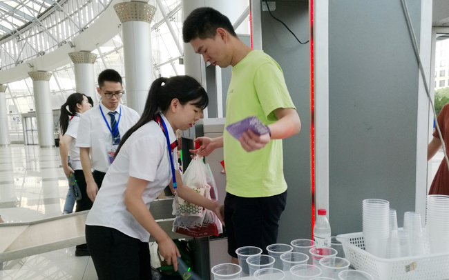 全体安检员在工作中严格执行安保指挥部下达的指令,做到服从命令、听从指挥,文明执勤、热情引导,规范操作、逢包必检。认真做好专业影像设备,三脚架等其他禁限带物品的劝解和收交工作,确保现场人员、物品进出安全有序。本场安检共查检入场人员7941人次,查检包物5075件,查收禁限带物品300余件,查检专业影像设备,三脚架若干,在全体队员的共同努力下,公司圆满完成了岳云鹏孙越杭州相声专场的安检任务。