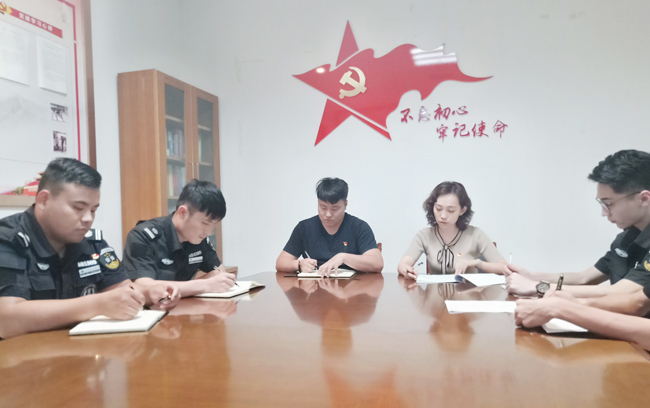 6月25日下午,公司驻市民中心特勤大队临时党支部召开支部党员会议,贯彻落实主题教育方案。会上,大队临时党支部书记裘知以“坚决维护核心,践行初心使命”为主题,结合大队实际工作情况,带领党员学习了习近平新时代中国特色社会主义思想,同时要求大家在日常工作生活中,积极参加公益活动,服务群众,增进党群关系。随后全体党员学习了公司党总支“不忘初心 牢记使命”主题教育活动方案。