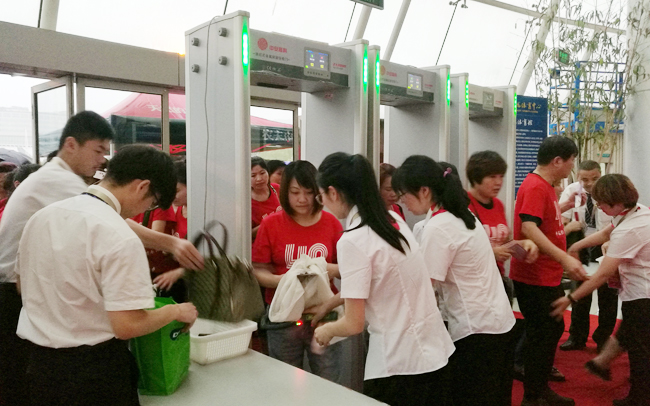 针对本次庆典晚会具有参会时间集中、人员随意性大、短时人流量大,不确定因素多等特点,为确保安检工作的顺利进行,公司大型活动保障部负责人遵循公司领导对安保工作的指示精神,做到高度认识、高度重视、高度警惕,主动与主办方安保负责人做好工作对接,确定各项安保措施,及时安装调试安检设备。现场管理员按时集队培训,认真做好安检员的岗前教育,做到定人、定岗、定责,提前上岗待命,不断完善各项安检措施。