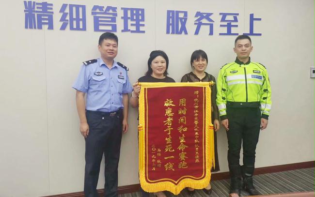 王俊燕一路快速开往医院,在950的指挥调度下,和与采荷中队队员的配合下,十分钟内顺利将病人及家属送到邵逸夫医院急诊部,为病人争取了宝贵的救治时间,在确保病人及时得到救治,脱离危险后,王俊燕才安心离开,投入到巡逻执勤中。事后,病人家属对新城中队TPTU铁骑队队员王俊燕表示万分感谢,并送来一面写有“用时间和生命赛跑,救患者于生死一线”的锦旗。