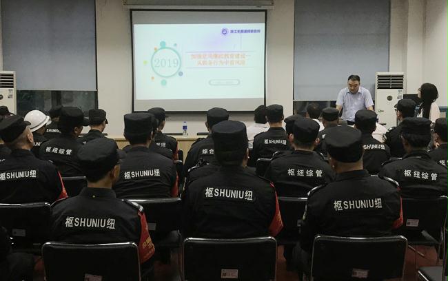 为进一步提高保安员法律法规意识,增加保安员职业道德建设,提高东站中队全体队员对各类违法行为的抵抗力和免疫力,7月15日杭州市安保集团特邀浙江丰原律师事务所田良标律师为公司驻火车东站枢纽中队和钱新中队两个中队开展了题为“从职务行为中看风险”的法律知识培训。