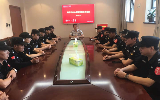 为全面加强保安队伍建设和提升客户单位的满意度,进一步完善上半年安保工作各项工作目标,7月13日,杭州市安保集团保安二部驻海宁市中心医院保安队召开2019年度上半年安保工作总结会议,医院保卫科陈楚燕科长、驻点保安中队长吕超及保安骨干等30余人参加会议。