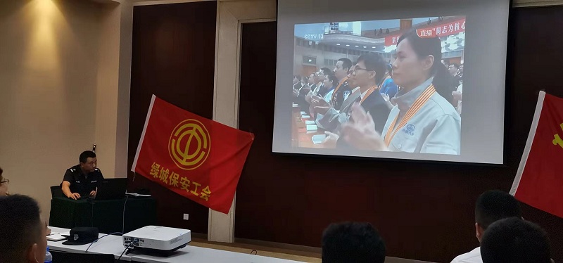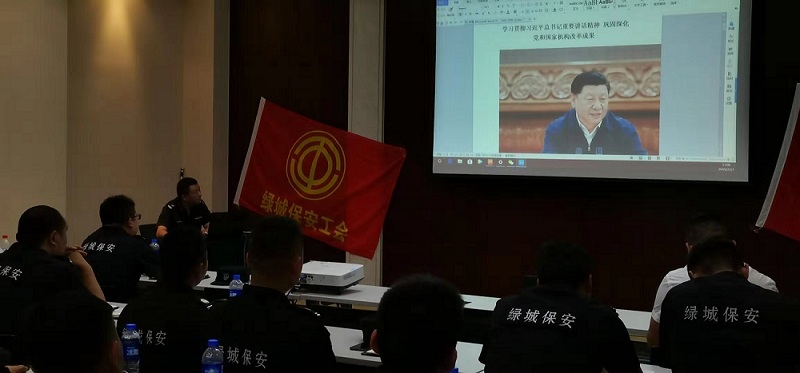 为贯彻落实公司下达的关于“保安勇担当?平安迎大庆”的主题活动精神,将公司布置的各项任务落地,充分发挥党支部、团支部和工会的引领作用,对员工全面开展热爱党、热爱祖国的教育,2019年7月21日下午,浙江绿城保安服务有限公司第二区域保安队党支部联合工会在物联网召开了学党章、忆党史,学习习主席五四运动纪念大会的重要讲话主题教育活动,第二区域保安队各级项目主管和监控员共计100余人参加了会议。