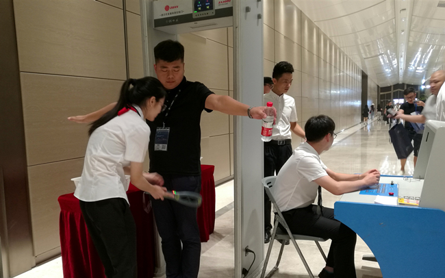 针对本届大会嘉宾多,论坛多,变化多,人流量大,不确定因素大等情况,为确保本届大会安保工作的顺利进行,现场负责人遵循公司领导对安保工作的指示,要求所有安保队员克服麻痹大意思想,各负其责,严守工作岗位,认真做好安保对接工作,对安保指挥部下达的每一道指令,做到高度认识、高度重视、高度警惕、及时做好上传下达。认真做好岗前教育,加强岗中巡查,不断完善各项安检措施。
