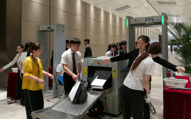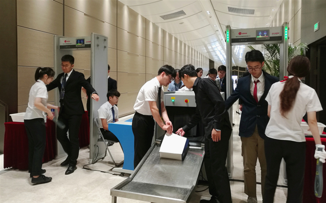 全体安保人员服从命令,听从指挥,始终保持严整的姿态,饱满的精神。做到文明执勤,热情引导,认真查检,确保安全。共查检入场人员631人次,查检包物501件。在大家的共同努力下,以扎实的工作作风,专业的工作技能,圆满完成中国日报社.21世纪全国学生模拟联合国大会开幕式的安保任务。