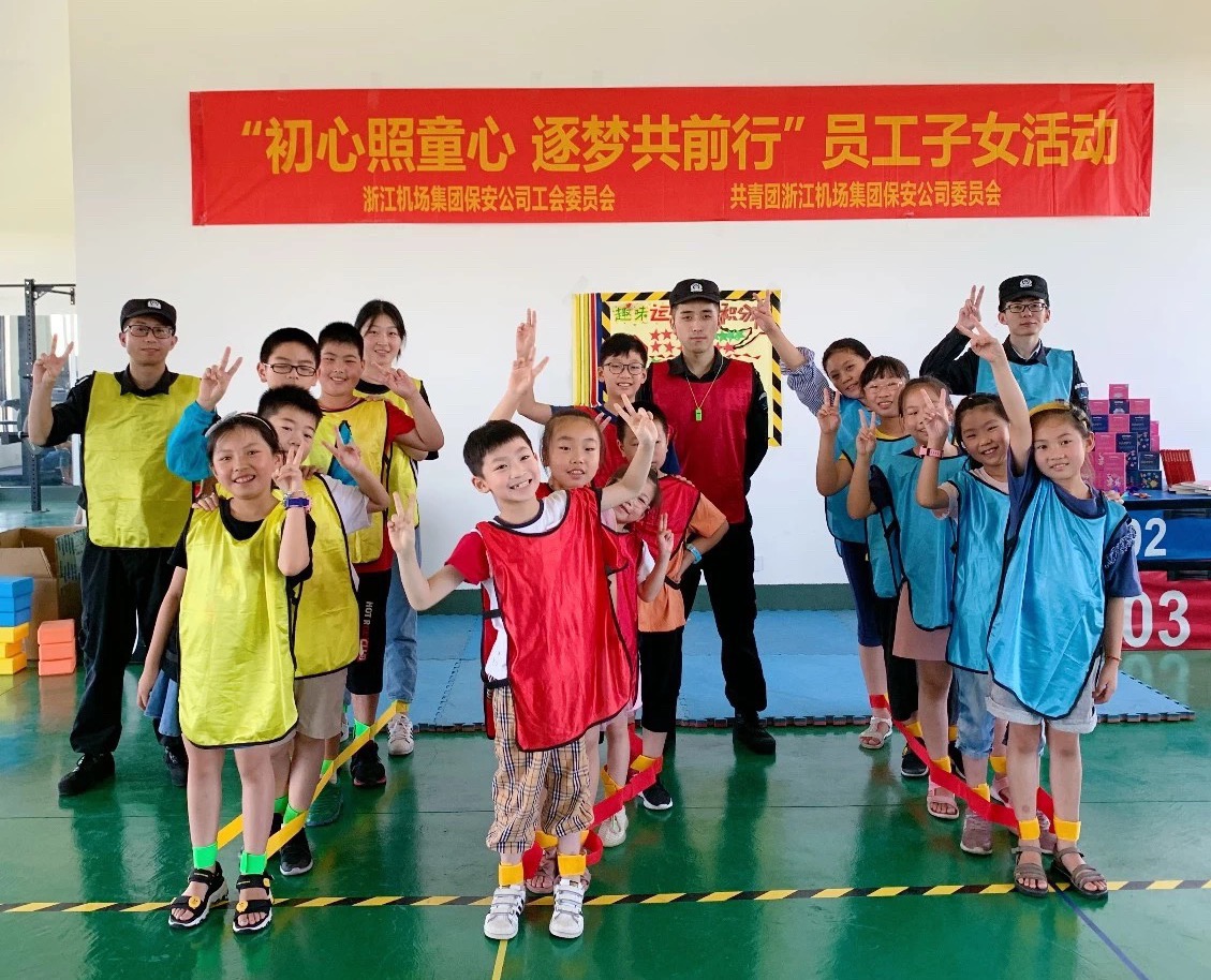 为深入推进“不忘初心,牢记使命”主题教育,切实关心关爱员工子女,让他们健康成长,并度过一个安全、快乐的暑假。2019年8月1日浙江机场集团保安公司组织员工子女暑期活动如约而至 ,本次活动由公司工会和团总支联合举办,活动以“童心照初心 ,逐梦共前行”主题展开,内容有:一是带小朋友们参观公安警犬基地,让小朋友近距离了解基地的训练生活,向他们宣传了安全防范知识,也提高了他们的社会正义感;二是“大手牵小手,趣味运动会”:小朋友分成三组,进行了 珠行万里 、摸石过河、有轨电车三项趣味运动比赛,孩子们在游戏中发扬了奋勇拼搏和团结协作的精神,也感受了运动带来的快乐;三是观摩机场三期建设沙盘:邀请杭州机场三期建设项目工作人员向小朋友们介绍与讲解杭州萧山国际机场的建设进程和发展规划,让小朋友了解杭州机场的变迁与发展,也感受和理解了家长工作的辛苦,增强作为机场员工子女的荣誉感。