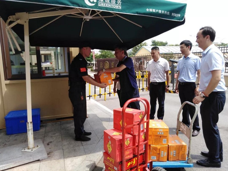 近日,绿城保安公司的各级管理者和工会主席带队来到基层岗位慰问,看望慰问辛勤工作在高温一线的员工,为他们送去毛巾、矿泉水、饮料等防暑降温物品向战斗在一线的员工们致敬。炎炎夏日挡不住大家的积极热情,一声声“辛苦了”,温暖了员工的心。慰问中,公司领导询问了员工的工作情况、身体状况等,嘱咐大家要注意饮食和合理安排休息时间,劳逸结合,注意防暑降温,确保身体健康,加强隐患排查,做好夏季安全生产工作。