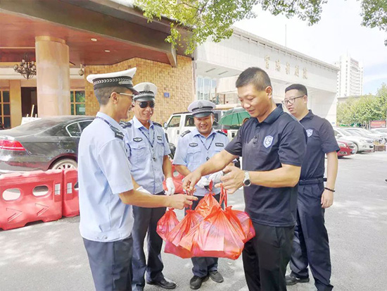 7月31日至8月1日,公司班子成员带领分管部门组队赴各岗点看望慰问坚守岗位的保安员、交通协管员,为他们送去关爱与清凉,向奋战在高温一线的员工表示衷心感谢。