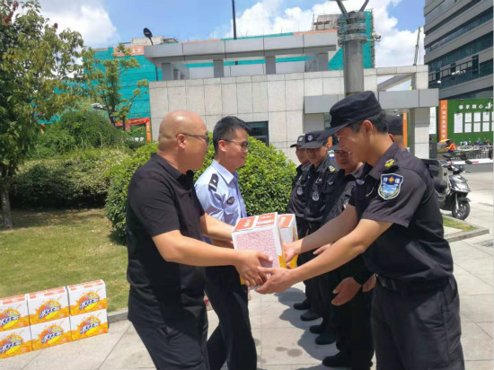 连日来,杭州持续高温,酷暑难耐,为切实关怀高温下坚守在维护人民群众生命财产安全第一线的保安队员们的身心健康,8月6日,杭州市余杭区保安服务有限公司领导班子开展了“夏日送清凉”活动。