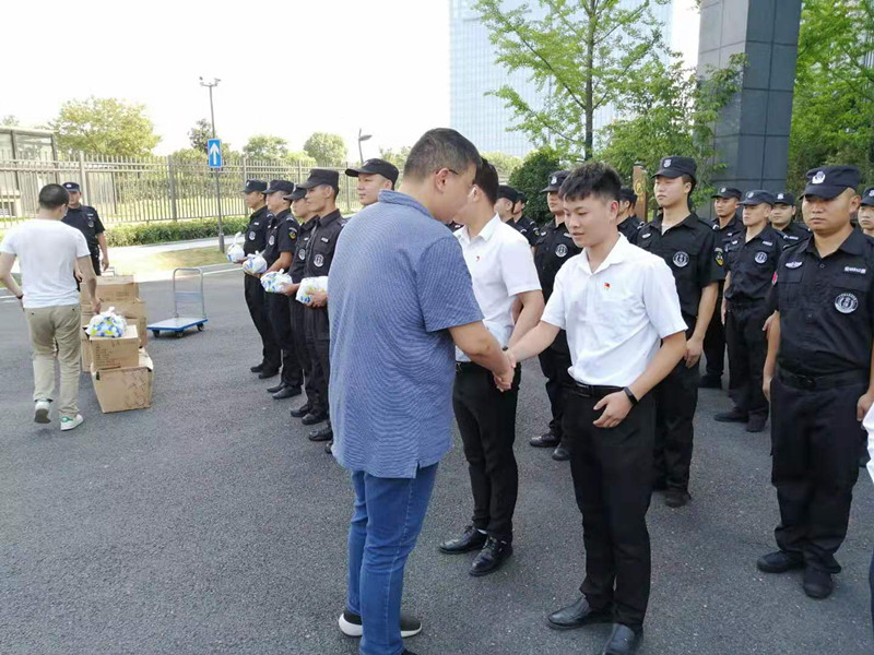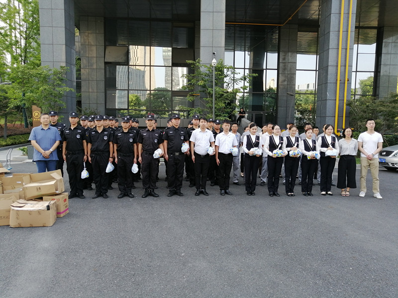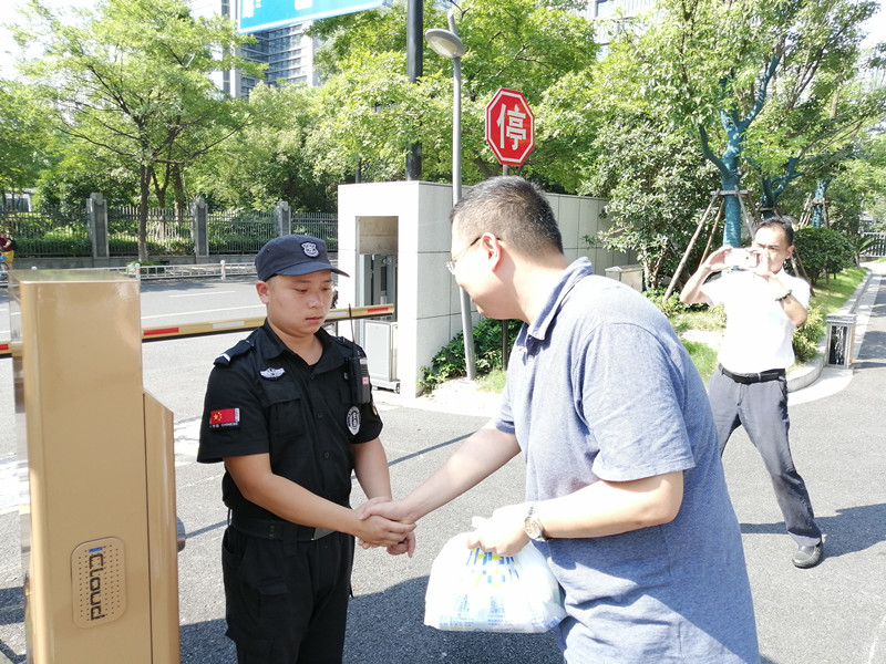今年入伏以来,持续的高温酷暑天气给人们的工作和生活都带来了一定的影响,尤其对户外工作者更是一个严峻的考验。为感谢那些不畏高温酷暑、依旧坚守在户外一线的员工,2019年8月6日,杭州上城区投资控股集团有限公司副总经理冯明涛协上投集团基层工会联合会相关人员在杭州上城区保安服务有限公司副总经理汪乾的陪同下,冒着酷暑,看望了坚守在高温一线的保安员们,为他们送去了防暑降温慰问品。