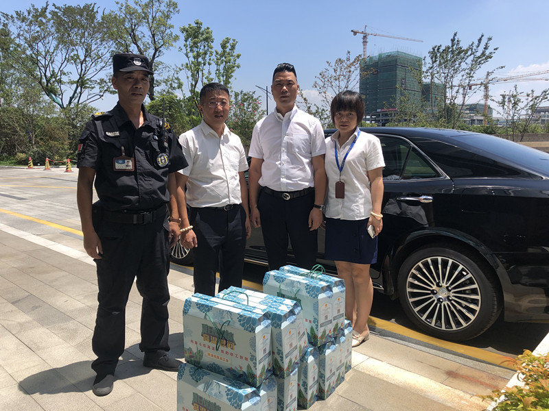 2019年8月6日中午,在公司领导的带领下,鼎华工会及区总工会慰问了工作在一线的保安、保洁人员、物业工作者,给他们送去了夏令用品,在炎炎夏日为大家送去了清凉,感谢他们为保安公司的付出,让他们感受到了公司工会及区总工会对他们的关怀。