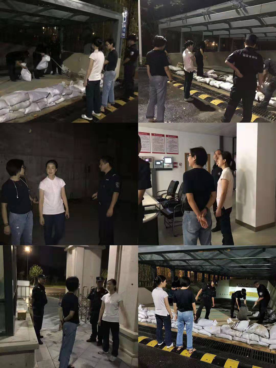 2019年8月9日,由杭州临安保安服务有限公司副总陈晓红带队,物业部负责人和物业人员组成的安全检查组一行4人,连夜赶赴防汛第一线,对医学院、博物馆、苕溪时代等人员密集型场所进行了全面检查,对地下车库、水泵房、配电机房、排水井、各楼层排水沟等要害部位进行了实地走访,并向各项目负责人详细了解各项防汛应急方案、责任制落实情况、人员职责分工、防洪预案编制、防汛物资储备等情况。
