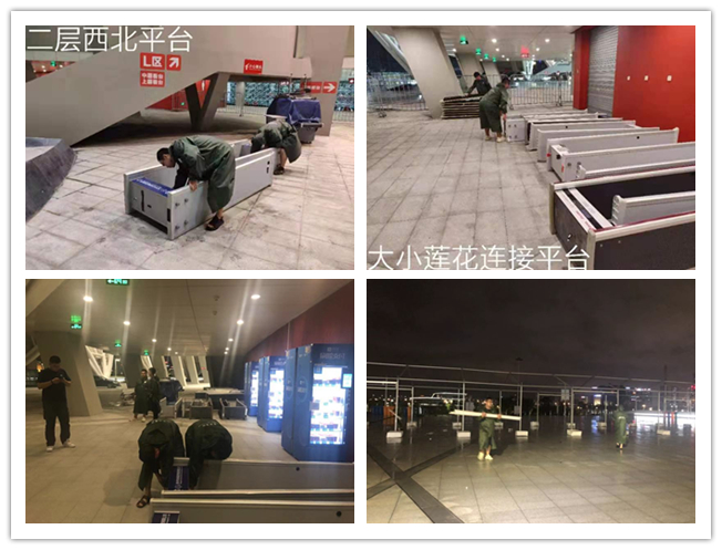 9日夜间,杭州奥体博览中心体育场“大莲花”的驻点安保队员连夜将三处平台4座大棚内安检门和X光机全部拆除,搬到安全区域。
