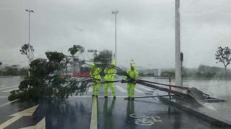 在这次抗台中保安人员无怨无悔甘于奉献,全力保障群众出行安全。让我们对所有城市守护者的不懈坚守道一声“你们辛苦了”!