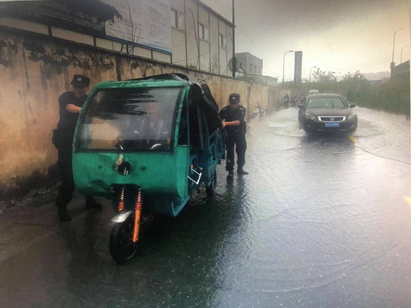 我们的队员第一时间清理倒塌的树木、堵塞的下水道