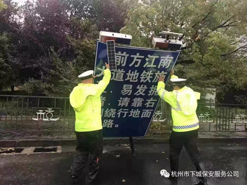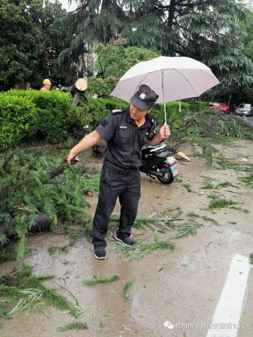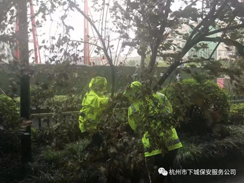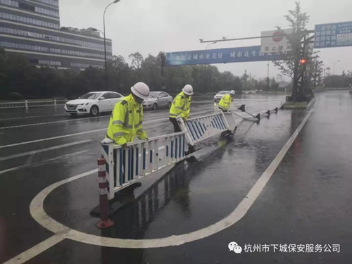 为防御台风、暴雨灾害,保障客户生命财产安全,8月10日,全体保安员在管理人员的带领下,坚守岗位,奋战在疏导道路交通、加固濒危设施、排除灾害险情等抗险救灾工作一线,全力保障客户的生命财产安全,得到了客户单位的阵阵好评!