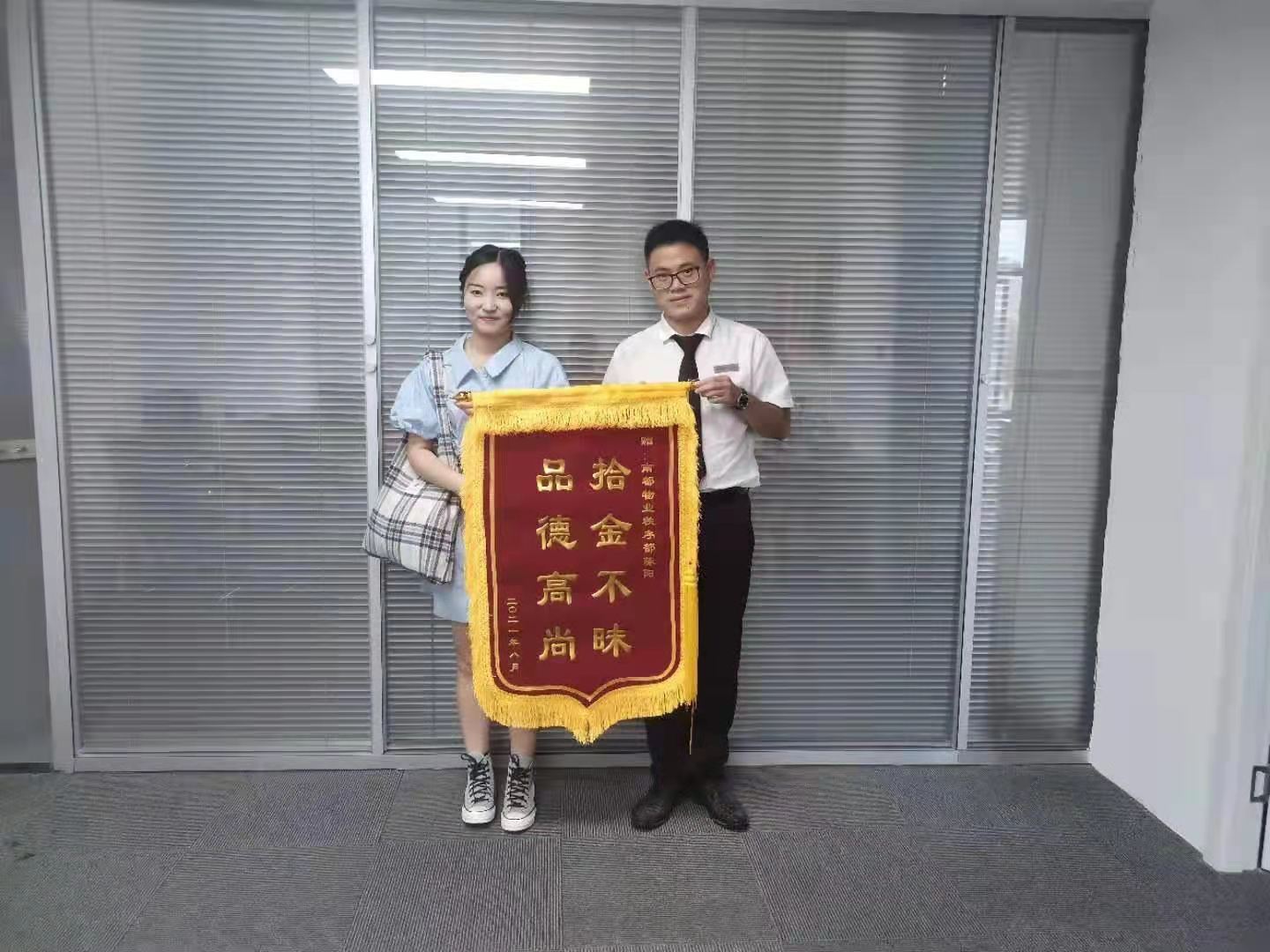 2021年8月15日明邦保安公司驻南都物业(德力西秩序项目部)队员陈阳在检查快递收发室时发现一部苹果手机无人认领,于是他第一时间上报队长,交到物业中心以便扩散失物招领信息。失主于下午7点左右到门岗询问失物信息,门岗队员上报队长,到物业确认核实失物信息并归还失物。失主手机失而复得十分激动,为了对我们保安队员陈阳表示感激之情,失主于次日到达物业,特赠送锦旗一面。以表感谢!秩序队员陈阳在此次事件中,拾金不昧的表现充分体现了作为安保工作者的高尚人格品质及良好的社会公德,也是我们整个秩序部的荣誉,大家共同学习的楷模!