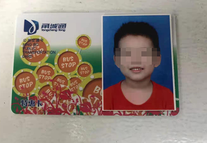 2021年9月6日星期一的上午7:50左右,鸿民集团驻宁波综合执法管理服务工作站的队员在例行巡逻检查的途中,拾到一名小朋友不慎遗落的“甬城卡”一张。只能凭着卡上的头像推断大概为一名学生。其他详细信息单从卡片两面也无从了解。