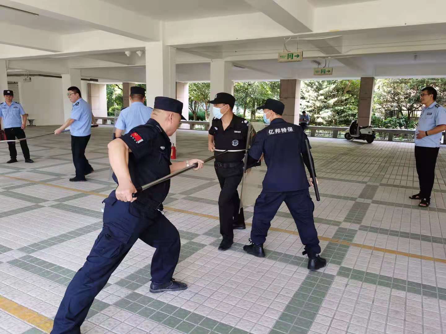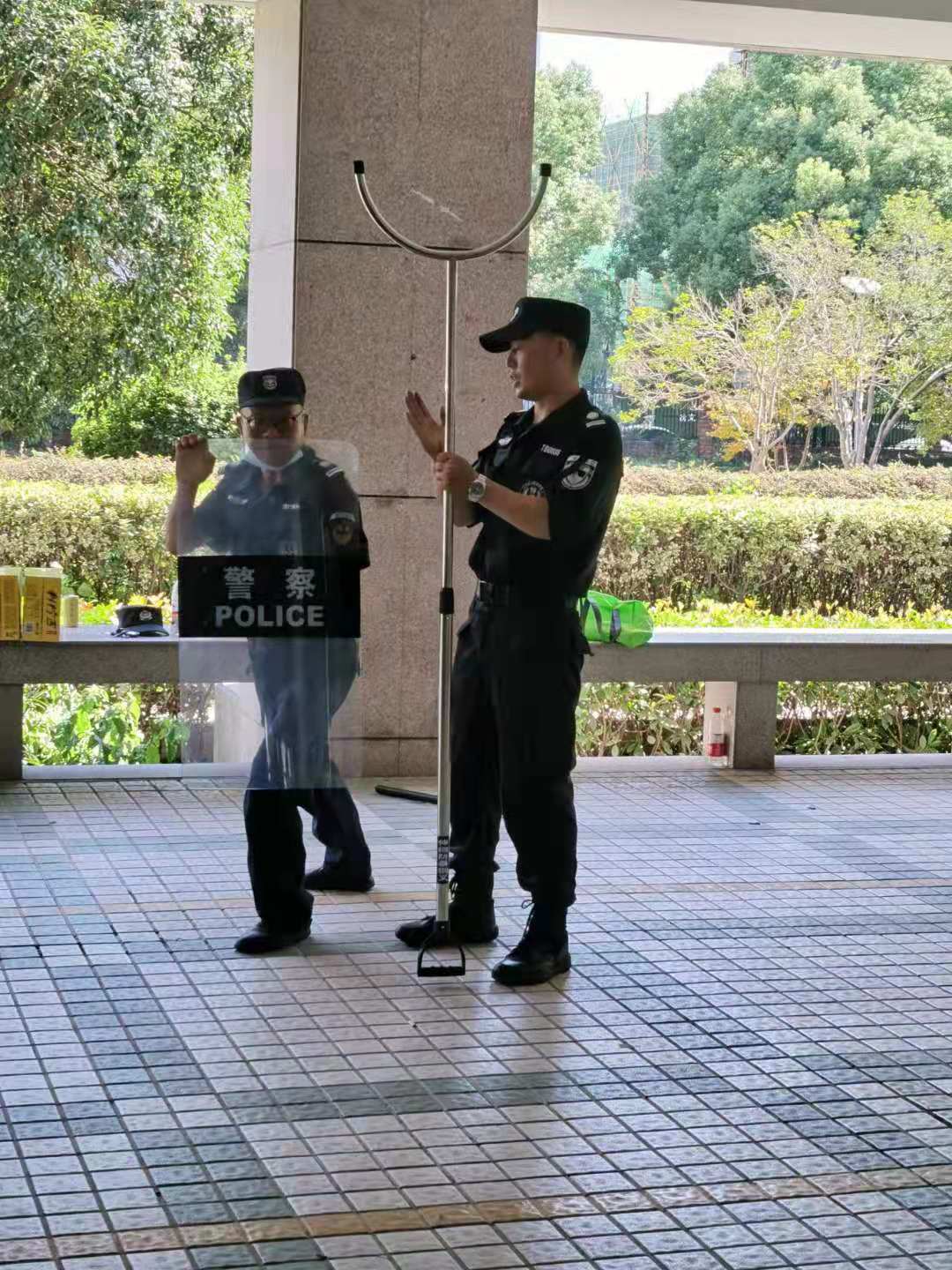 现场讲解遇到突发事件的处置流程,教授装备的基本操作、钢叉及盾牌的攻、防技术,同时详细讲解了应对突发事件的处置办法,还设置了现场处置演练科目,以检验保安人员快速制敌的技能。