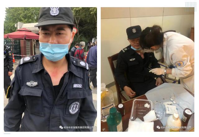 2021年10月19日上午,公司驻某医院安保班长徐丽卫同志接到医院入口处安保队员的汇报称,一位住院患者及陪同家属未持有效出院证明,企图擅自出院前往医院附属院区做检查,队员根据院方要求及规定进行阻拦并劝说,协商无果后请求班长支援。徐班长第一时间佩戴执法记录仪赶到现场协助沟通。过程中,患者及其家属情绪激动,不听任何劝阻执意往医院门口冲,徐班长见状张开双臂拦住患者前进,患者家属随即动手,上前撕扯徐班长衣服。徐班长躲避不及胸前被挖出两条深深的血印,但他却始终没有还手也没有放行,坚守文明执勤原则,耐心劝导直至保卫科领导和警务室人员到场处理此事。