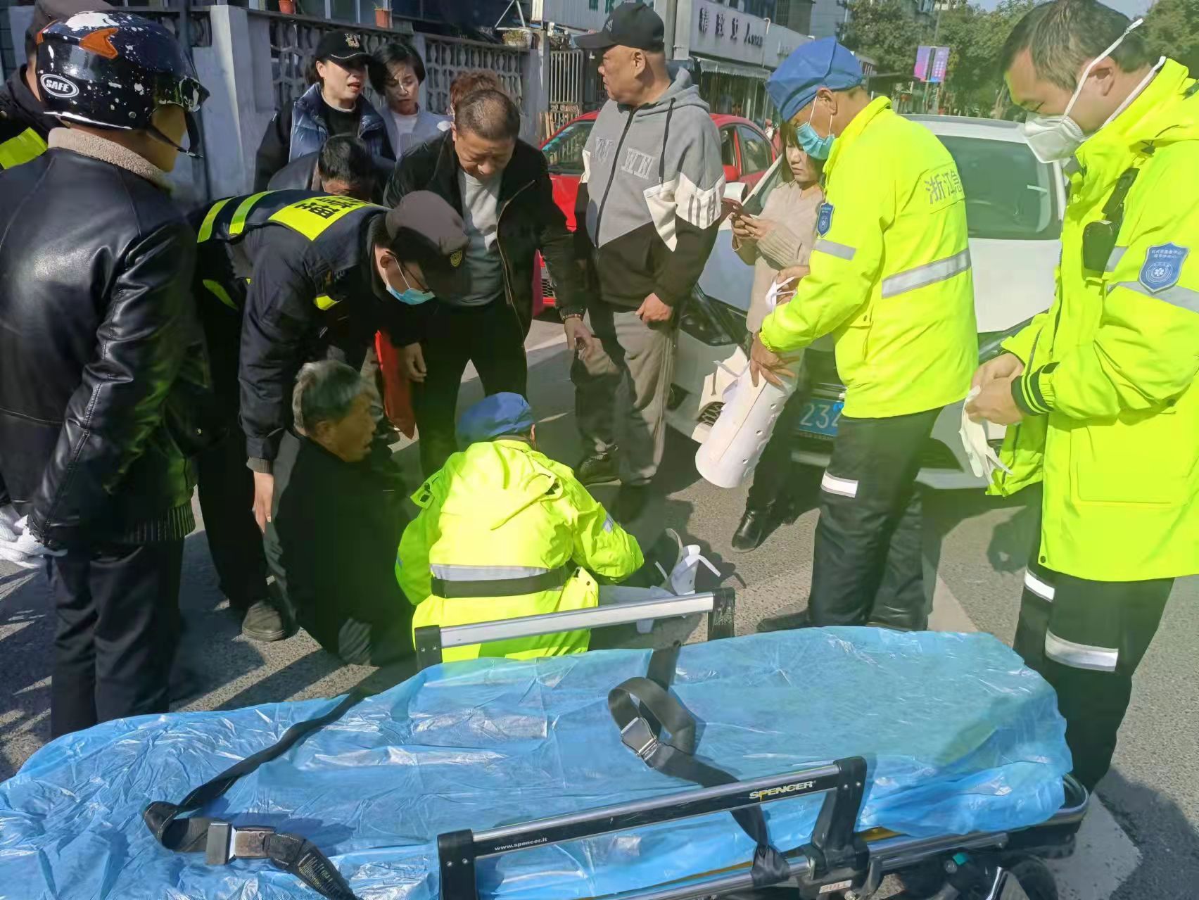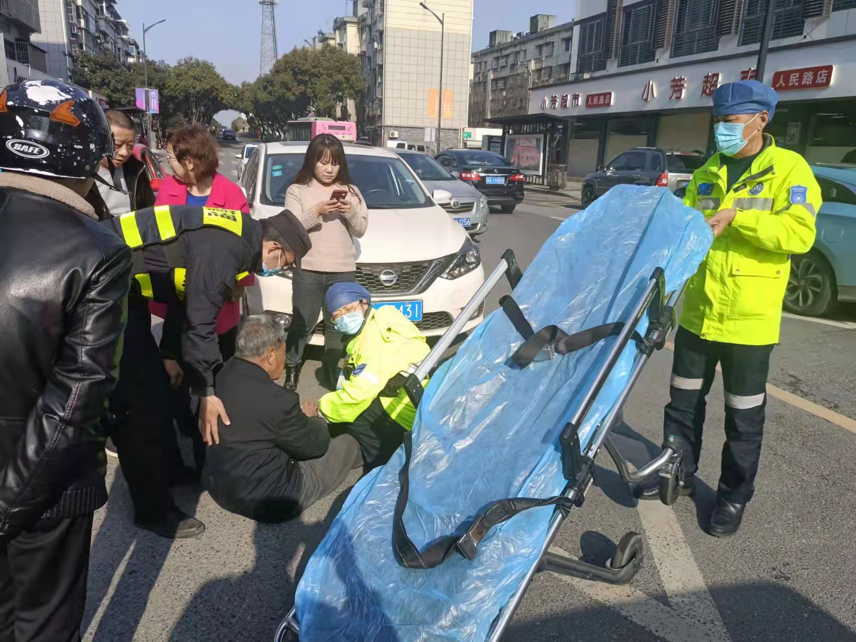 2022年03月13日13:30时,杭州塘栖市容项目队员陈国清、武帅锋在文苑路文体中心附近展开巡逻时,发现前方路口发生紧急交通事故,两人便立即上前查看具体情况,只见一辆行驶中的白色轿车将头发花白的老大爷撞到在地,受伤老人躺在马路中间动弹不得。由于事故位置处于十字路口中心处,车流量较大,随时都有发生二次事故的可能,根据现场情况,两人见状迅速进行了分工,武帅峰上前负责指挥道路交通,陈国清负责看护受伤老人,同时提醒轿车司机拨打120急救电话,并将现场情况上报带班组长。很快,救护车及时赶到,两人协助医护人员将受伤老人抬上救护车,并疏散围观群众。待秩序恢复正常后两人回到工作岗位中,继续开展巡逻工作。