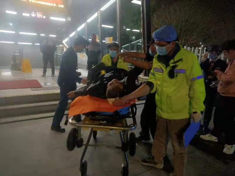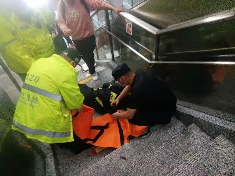 2022年3月21日晚21:20分左右,浙江民泰驻杭州市余杭区良渚地铁菜场项目队员王艳强、郑之元巡逻至地铁二号线良渚站D出入口时,发现步行楼梯上有一男子一动不动的趴在地上,头部流血受伤严重。