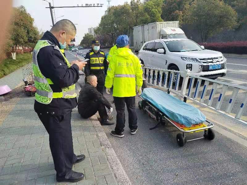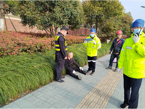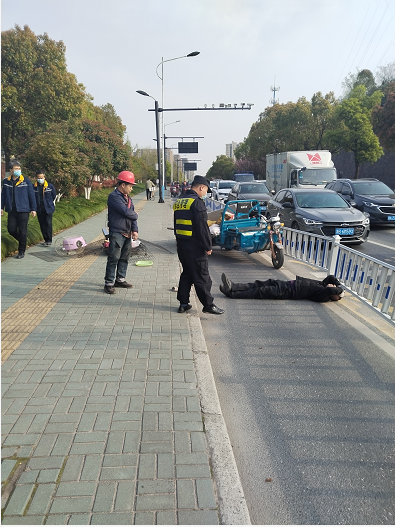 2022年3月28日下午17:10,浙江民泰驻杭州临平区星桥城管中队队员赵旭与交警王亚磊在星都路周边开展联合巡查任务,在巡查过程中遇见一位老大爷双手抱头痛苦的躺在非机动车道上。周边散落着一些杂物,两人见状立即上前查看具体情况,只见大爷额头有一处擦伤,其他暂无明显外伤,此时正处于下班晚高峰经过车辆较多,为避免车辆拥堵及二次危险的发生,两人小心翼翼地将大爷扶到旁边的人行道上坐下休息,进一步询问其精神和身体状况并及时联系了120急救电话。