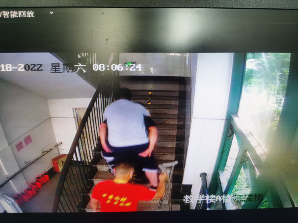 一年一度的中考,是莘莘学子的人生转折点。2022年6月7日-8日中考期间,杭州市临平区第五中学考点迎来了一位特殊的考生。该学生考前腿部不慎受伤,无法行走,只能坐轮椅参加中考。因中考相关规定,家长不能进入考场协助,故杭州市临平区第五中学考务组在接到学校通知后,提前安排并做好应对,学校执勤保安主动承担了此次护送任务,为这名考生保驾护航。