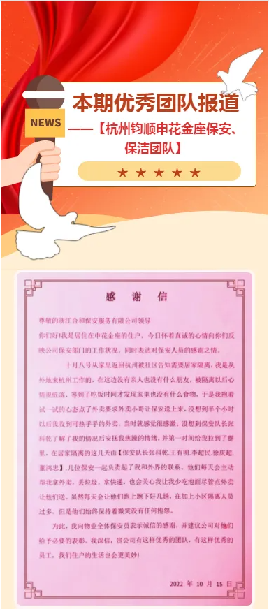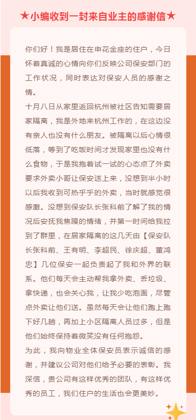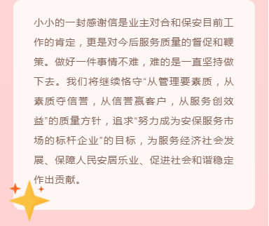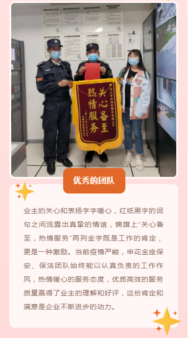 关心备至,热情服务—合和申花金座保安团队收到业主锦旗