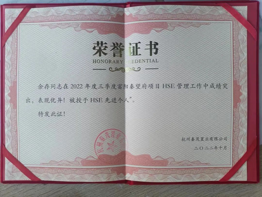 由于在安保工作中表现优异,余存还被客户单位评为第三季度“先进个人”,获得荣誉后,他表示将不断进步,以更加饱满的工作状态投入到未来的工作中。