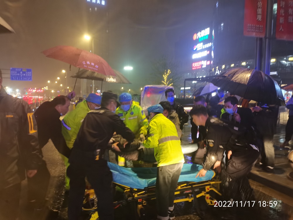当天秋雨绵绵,天气十分阴冷,受伤男子手掌上的皮全部擦破,呈“大”字型的躺在沥青道路中间,见状李喜林马上让赶来支援的保安队员取了一把雨伞为受伤男子打上避免其进一步淋湿,在不破坏现场的情况下,安排队员们为负伤男子擦拭身上雨水,帮助其止血,并不断与其说话以确认其意识状态。很快,救护车到了,经过医务人员的现场检查确认后,医护人员表示男子无大碍,但需要进一步检查和治疗,随后保安队员与医护人员一同将男子送上了救护车,望着救护车慢慢远去,李喜林心中的一块石头终于落下。