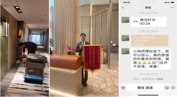 11月11日,西湖壹号业主中国美院周教授家里有很多书籍,整理搬运工作繁重。力邦保安队员见状,主动上前帮忙搬运。力邦保安队员来来回回搬运数次,将周教授的书籍都整理搬运完成。周教授为表达自己的谢意,发了一个红包,但被保安队员依据公司规章制度婉言谢绝。为此周教授特意做了一面锦旗以示感谢。
