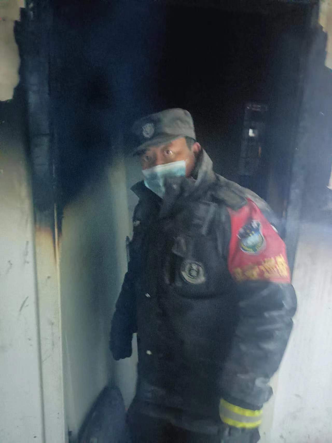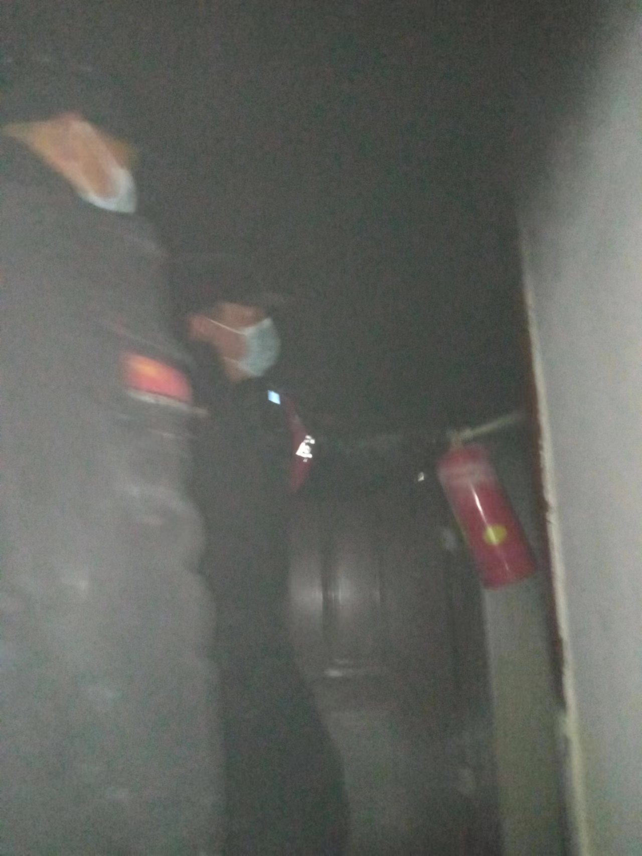 艰难行至五楼发现当时房间开着,火苗已向大门扑出,头顶过道装修的顶板吱吱作响不停掉落,随即先去敲501的门,将逃生方法教给业主,并交代赶紧带领家人往楼下撤离。随即和队员一起拿着灭火器往着火处喷洒。在扑灭外间的明火后,队员们已经渐渐体力不支,大脑缺氧出现眩晕,晕倒在地上,千钧一发之际耳边响起消防员同志呼喊声“兄弟们你们辛苦了!你们撤,我们上”,随即就有一双强有力的大手把我们扶至楼下,撤离到外面的队员们也逐渐恢复了意识,做好维护现场秩序的工作。