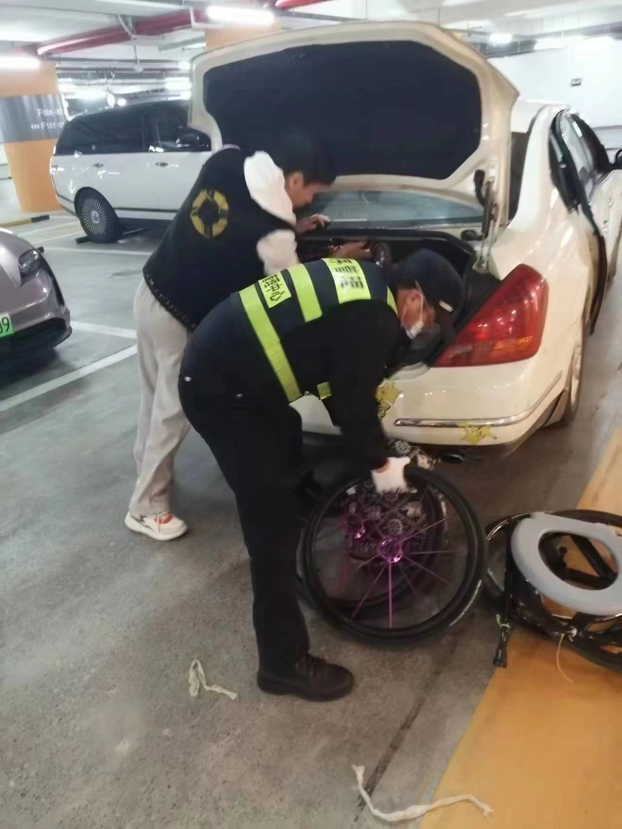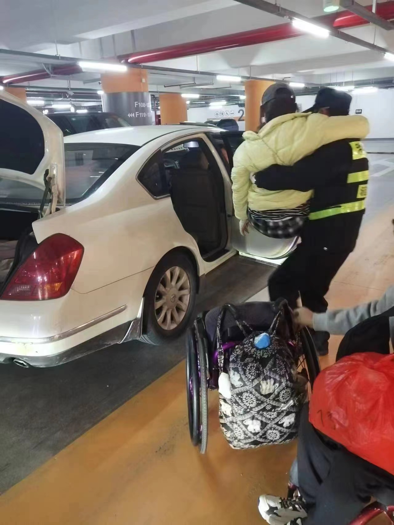 (图为3月23日晚,红鼎安保队员主动帮助残疾人,送其上车)