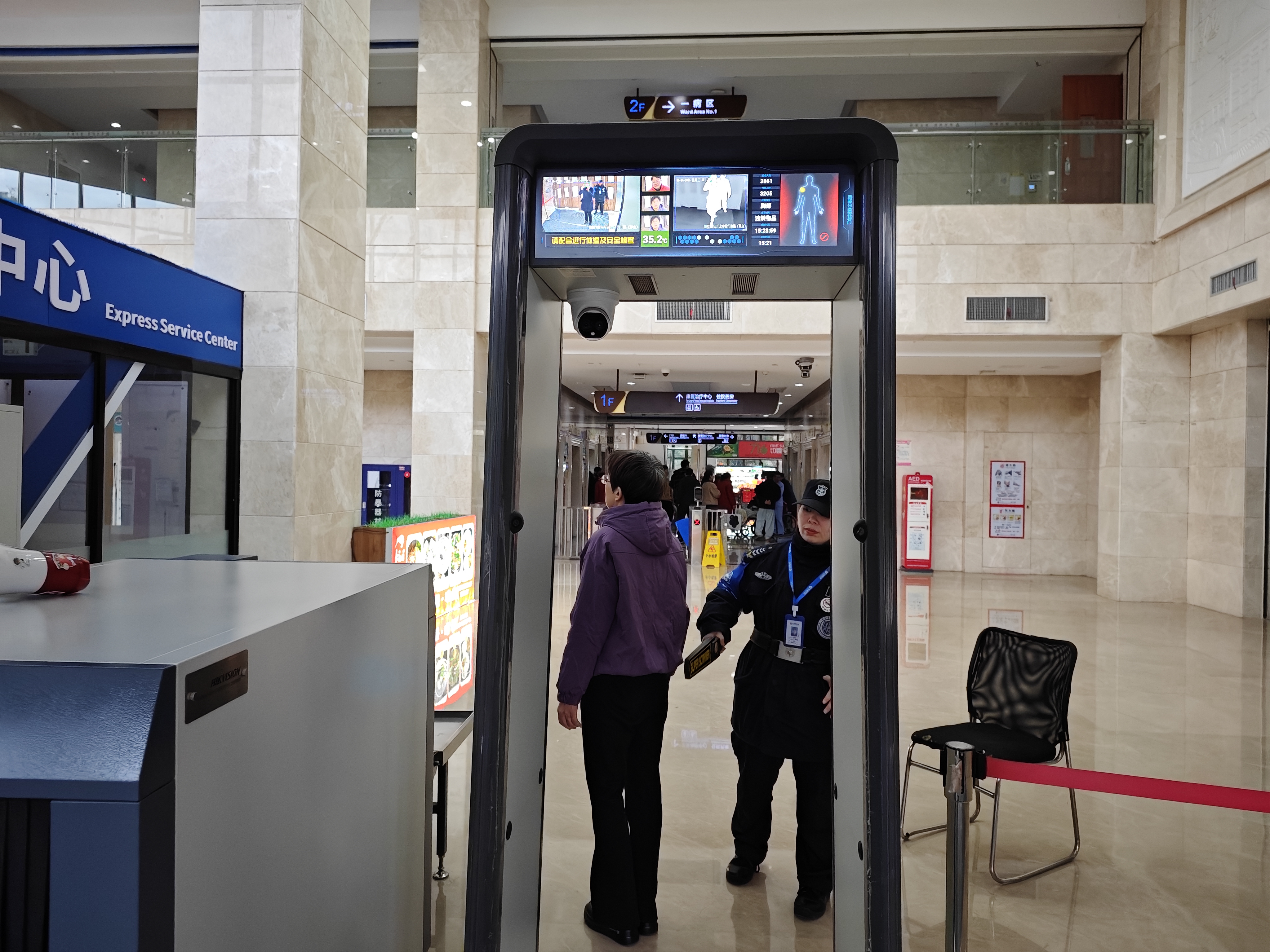 在浙江医院三墩院区住院部北二门的安检岗位上,有一位女性安检员,她不仅是守护平安的“安检卫士”,更是患者与家属心中的“暖心大姐”。她叫王京力,是浙江红鼎保安服务有限公司派驻浙江医院的一名普通却不平凡的安保队员。