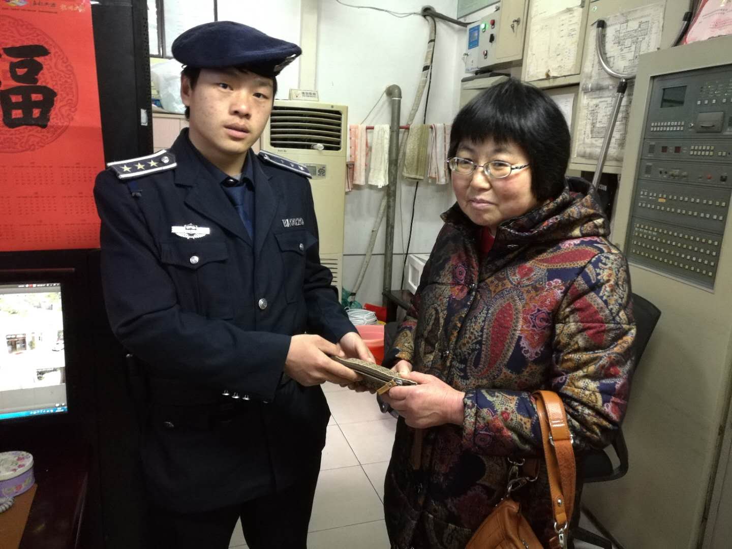 景区园文局保安刘高领执勤时捡到一女士钱包归还失主