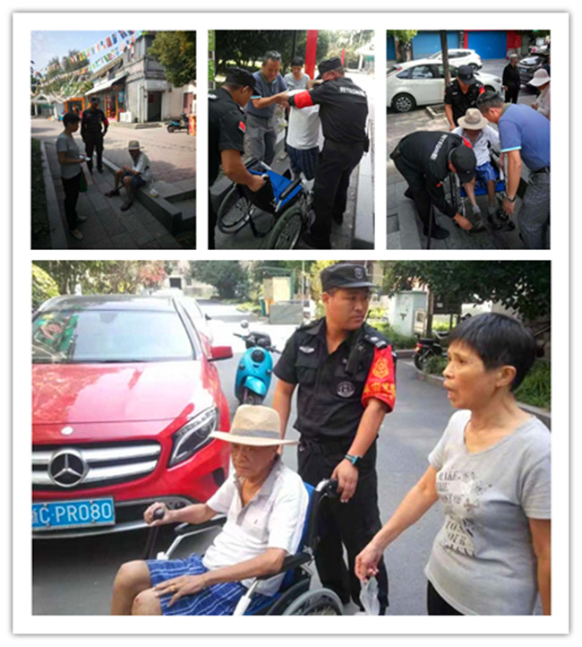 忽然,一个想法从小秦的脑海里涌现出来:拍个照,发到保安队员群和社区群,看看有没有人认识。不久,南八苑的保安吴云龙在群里积极响应,说这两天好像看到过这位大伯,儿子家是6幢做建材生意的。与此同时,社区工作人员也把轮椅带了过来,所有人一起将刘大伯扶上轮椅送回了家,并通过刘大伯儿子在小区停车备案的信息联系到了他。