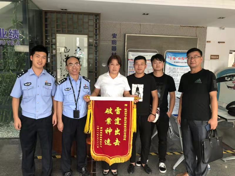 10月23日,石桥派出所合成作战室收到一面锦旗。 近日某小区发生多起盗窃案件,派驻石桥派出所的特保队员在民警的带领下连续奋战多日,进行视频追踪,蹲点排查,昼夜不分,终于将嫌疑人抓获,为表示感谢小区物业专程送来一面印有“雷霆出击、破案神速”的锦旗,以表谢意。