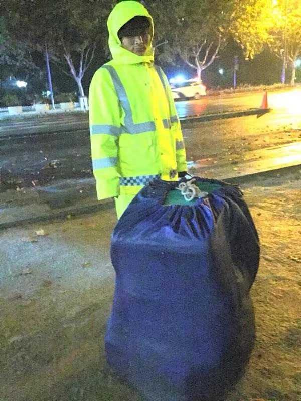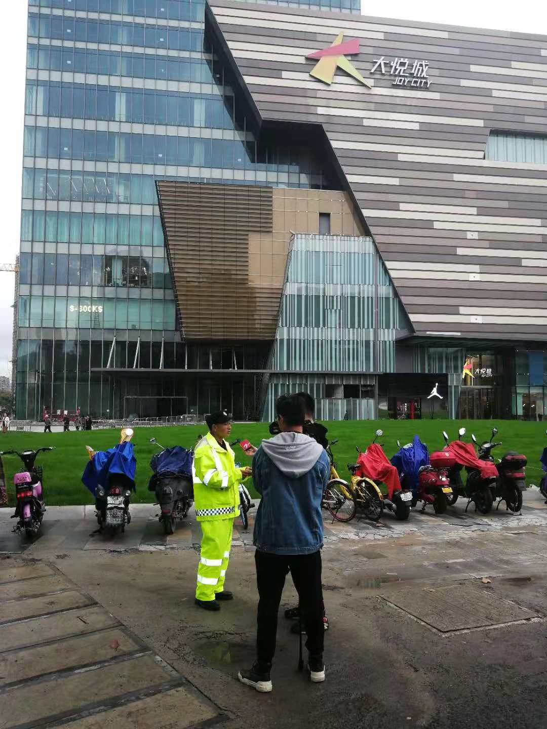 2018年11月5日晚间22:20左右,杭州拱墅保安服务公司驻大悦城保安员黄春水同志,正在工作巡视时,发现路边有一个将近半个人高的不明物体,于是上前仔细查看,原来是一大包“中通快递”的包裹。由于当时周围一个人都没有,无法联系失主,黄春水同志没有私底下处理物品而是立即上报给当班负责人,经当班负责人把此情况上报给大悦城领导后,将包裹移交到派出所警务岗亭。