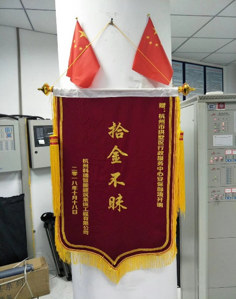 2018年10月16日下午13点左右,拱墅区行政服务中心安保队长项开明正在例行巡查楼层,在一号楼大厅捡到钱包一个,内有银行卡、驾驶证等多张各种证件和现金若干,经过二号楼交警查询并核实身份,联系失主,确认失主为周春宝,并与当天,联系上失主,归还其钱包,失主为表示感谢,特送锦旗一面。拱墅区行政服务中心安保处因此荣获一面“拾金不昧”锦旗。