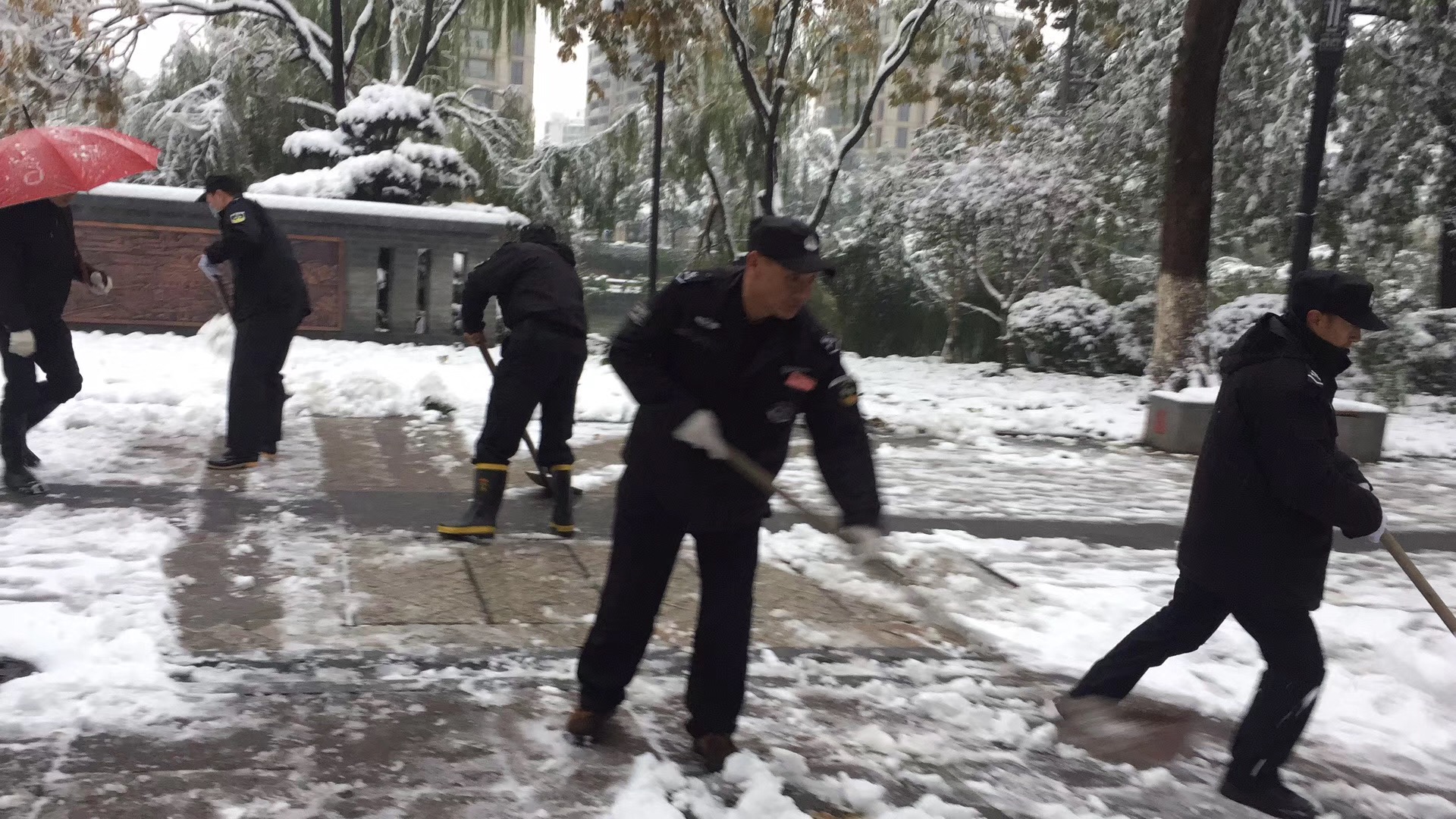 自杭州入冬后,气温便一路“断崖式”下降。12月8日,杭州大雪突至。经过一夜的肆虐,整个城市都被妆点成了一个银装素裹的世界。杭州拱墅保安服务公司立即启动防雪抗冻应急预案,各部门连夜值守,全体人员24小时开机,紧锣密鼓地投入到防雪抗冻工作当中,各驻点加大了巡查频次和力度排查安全隐患。