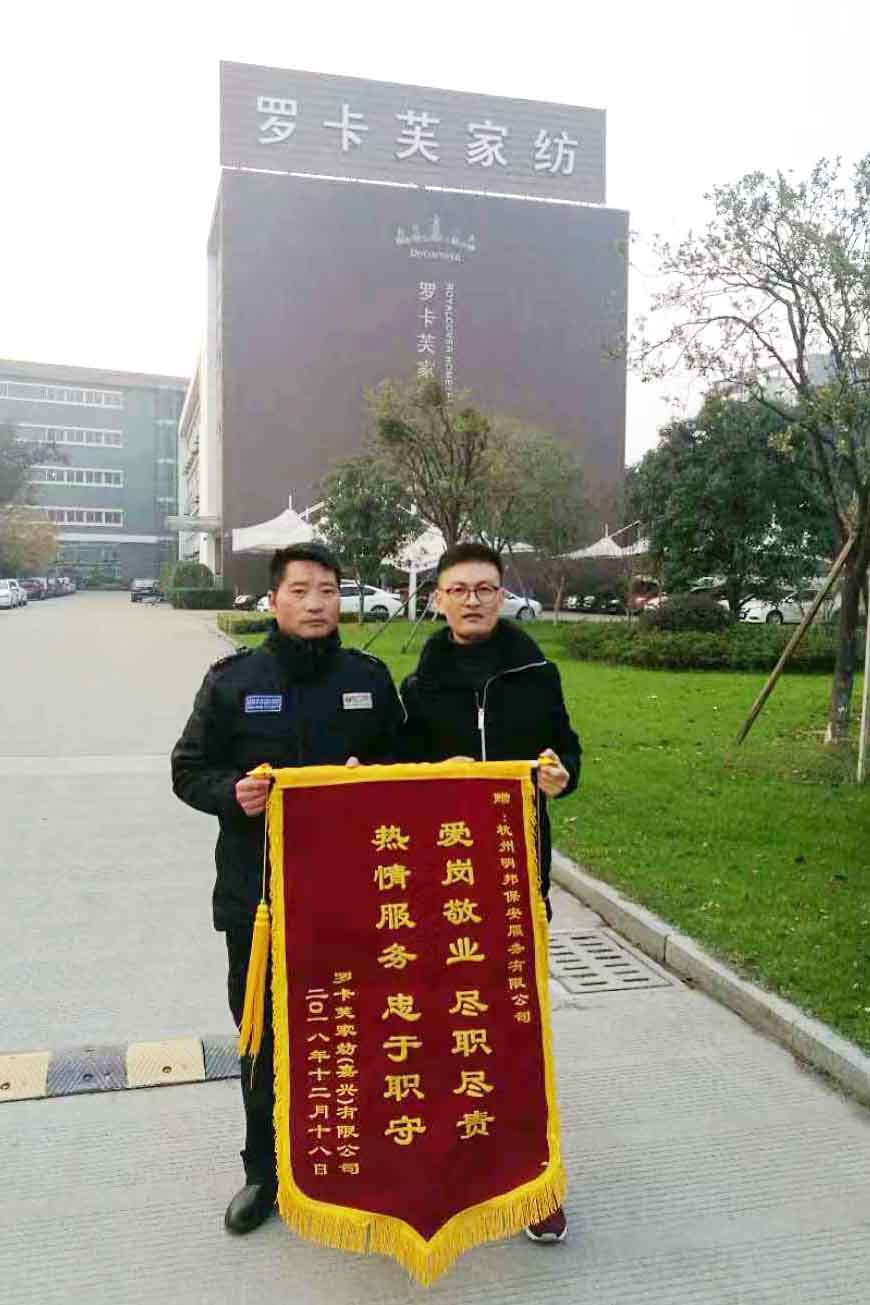 12月22日,公司收到一面来自罗卡芙家纺的感谢锦旗,感谢我公司保安员在工作中认真履职,勤勉敬业,确保了罗卡芙家纺的全年治安秩序平安稳定。罗卡芙家纺的负责人表示,我司保安员在工作中严格遵守公司产品进出厂管理制度和人员来访登记规定,工作态度端正,服务热情周到,有真诚的服务意识和强烈的敬业精神。