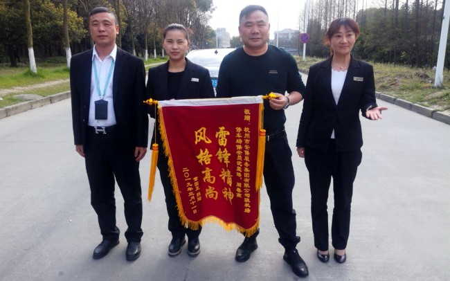 三月春风暖人心,雷锋精神永传承。2019年3月11日,公司驻萧山机场网约车停车场收费员沈坚娣、周春燕在执勤时发现一个拎包无人认领,内有现金2000元、手机、身份证、银行卡等贵重物品。通过多方查找,两名女同志通过明航宾馆工作人员联系到了失主,并物归原主。事后,失主将一封感谢信送至了公司,将印有“风格高尚,雷锋精神”的锦旗送到两名女同志手上,表达自己的感谢之情。一面锦旗、一封感谢信,字里行间展现了公司两名女保安高尚的个人品质和精神风貌,这既是一种肯定,也是一种鼓舞。