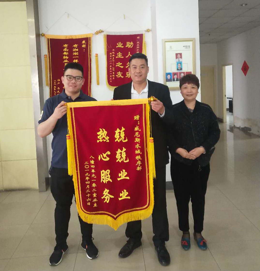 业主十分感动,当场从信封里拿出钱来给守在车边的保安员表示感谢,在被婉拒后,又特地制作锦旗送到公司。