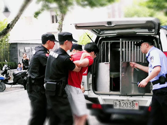 演练模拟富春一幼放学时段,家长们正有序刷脸进园准备接孩子。有一男子尝试多次刷脸,都无法通过门禁系统,于是想从出口闯入幼儿园,同样被保安按规范制止。闯入无果,该男子从怀里掏出“菜刀”进行威胁、强行闯入。幼儿园立即启动“防暴力入侵”应急程序。保安立刻拿起盾牌进行防范,另一名保安立即关闭入口,快速启动110联网报警系统和园内应急广播系统,持钢叉增援B岗保安合力将“歹徒”控制在进园通道区域形成对峙。