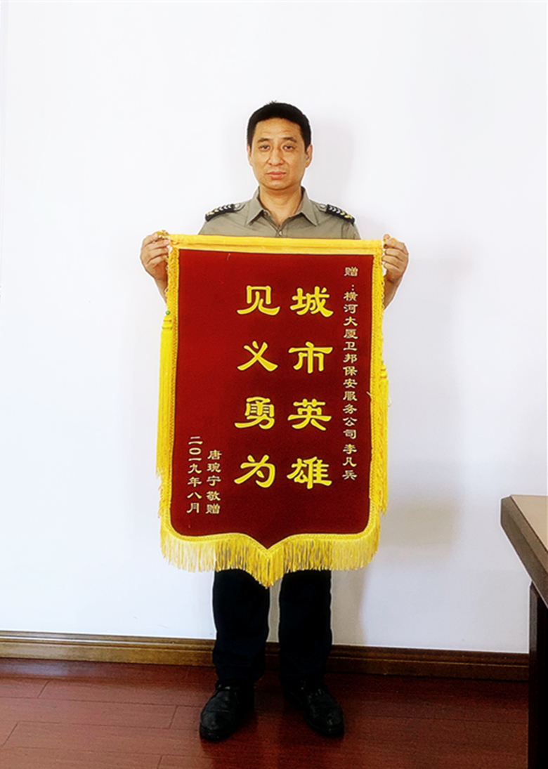 事后,李凡兵没有向任何人提及此事,直到唐女士等三人把锦旗送来才被公司知道。唐女士对李凡兵临危不惧舍己救人,做好事不留名的高尚品质十分敬佩和赞扬。她早早想来感谢,无奈没有他的联系方法和地址,后来去派出所才了解到李凡兵的电话及单位,同时也了解到袭击者是被监狱关押5次刚放出来的狂命徒。保安队长李凡兵就是用他这种“爱管闲事”的精神,践行着保安勇担当的职责。