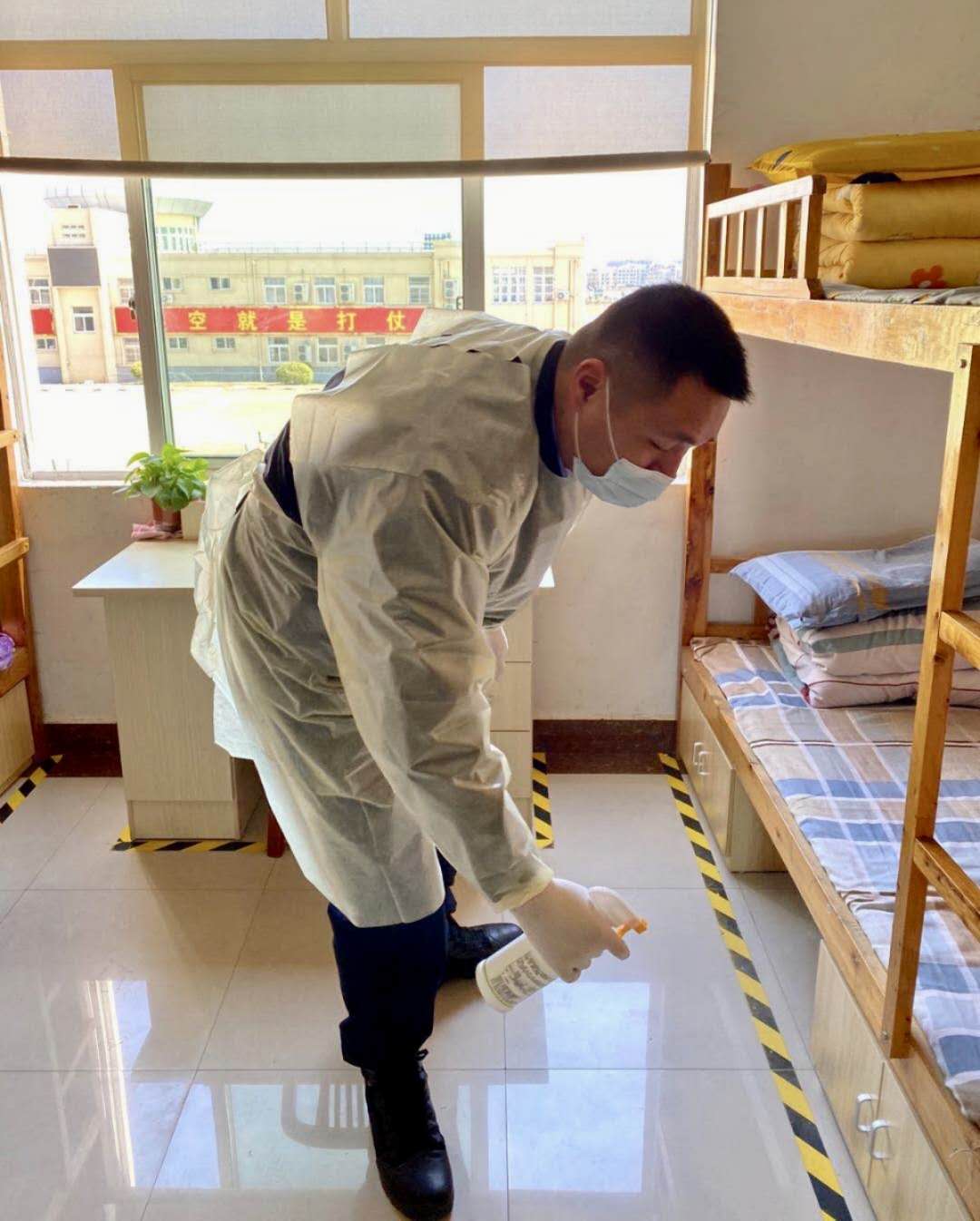 实时掌握员工动态,极大地避免了队员上下班不便、存在感染风险等问题。在宿舍管理上他更是无有丝毫马虎大意,安全人员每日定时定点开展消毒工作,定期期检查内务情况,避免因宿舍休息人员过多,引起脏乱差等情况。